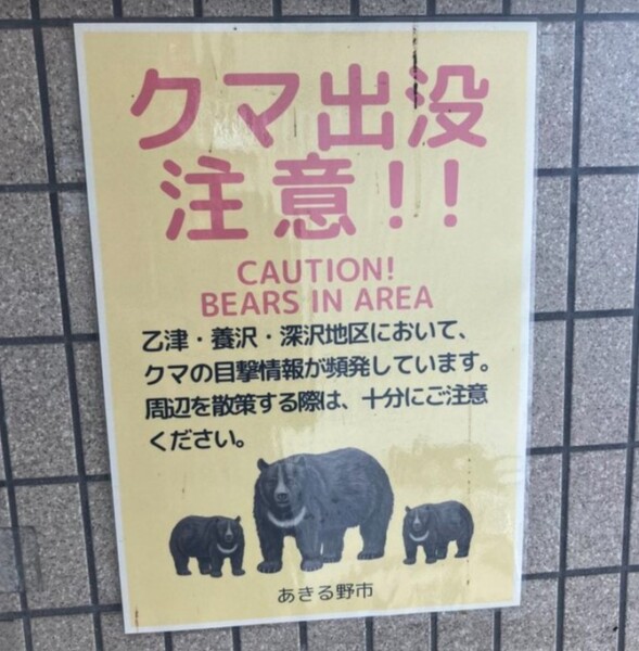 ↑駐車場には「くま出没注意」の案内が。ここ最近は熊被害のニュースなんかもよく目にするのでちょっと怖い。出くわさない事を願うばかり・・・。