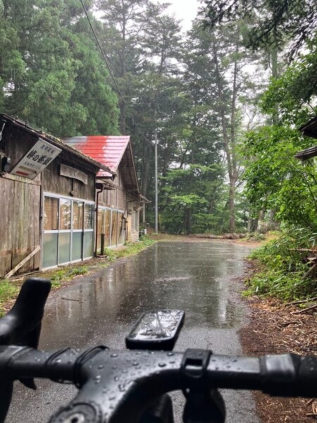 すぐに引き返して下っていく。ディスクブレーキだから雨でも大丈夫だろうと思っていたのだけど、ここまでの大雨だとそれなりに制動力も落ちるようで結構怖かった。