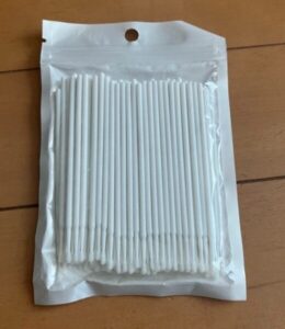↑タッチペン以外に購入したものとしては、綿棒のような感じの細いハケも合わせて購入した。これの方がタッチペン付属のハケより細かい部分も塗りやすいのかなと。