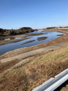 ↑小貝川を通過した際、川の水が全然ない様子に驚いてしまった。雨不足とは聞いていたけどここまで水がなかったとは・・・。この先少しでも降ってくれればよいのですが。