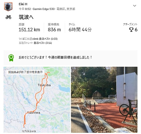 という事で約150kmの筑波ライドが無事終了。自宅に到着して少したつと小雨が降ってきた、濡れずに済んで何より。