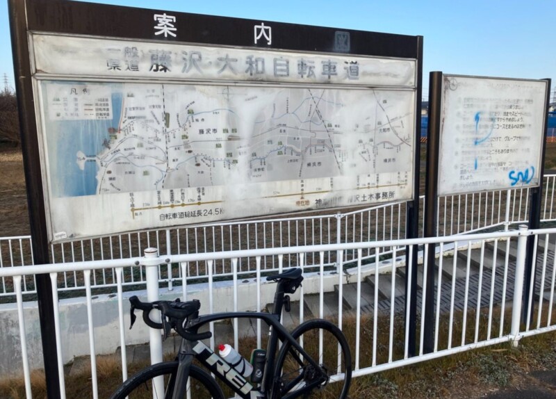 帰りも基本的には同じようなルートで帰るけど、一部、途中にある鶴見川サイクリングロードを走ってみる事にした。