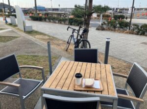 海を見て景色を楽しみたい所だけど、まずはお腹がすいたので食事をする事に。8:30くらいについたのだけど、事前に調べたところこの時間にOPENしているのはたぶん「cafeとびっちょ 江の島ヨットハーバー店」というお店のみ。という事でここで朝食をとる。