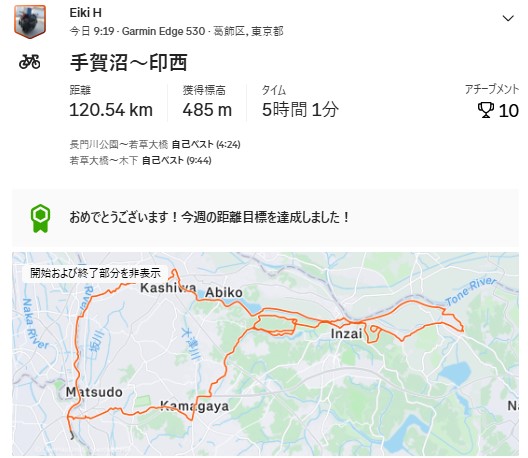 先日走った江戸川サイクリングロード、行きは江戸川サイクリングロードで帰りは利根川サイクリングロード
